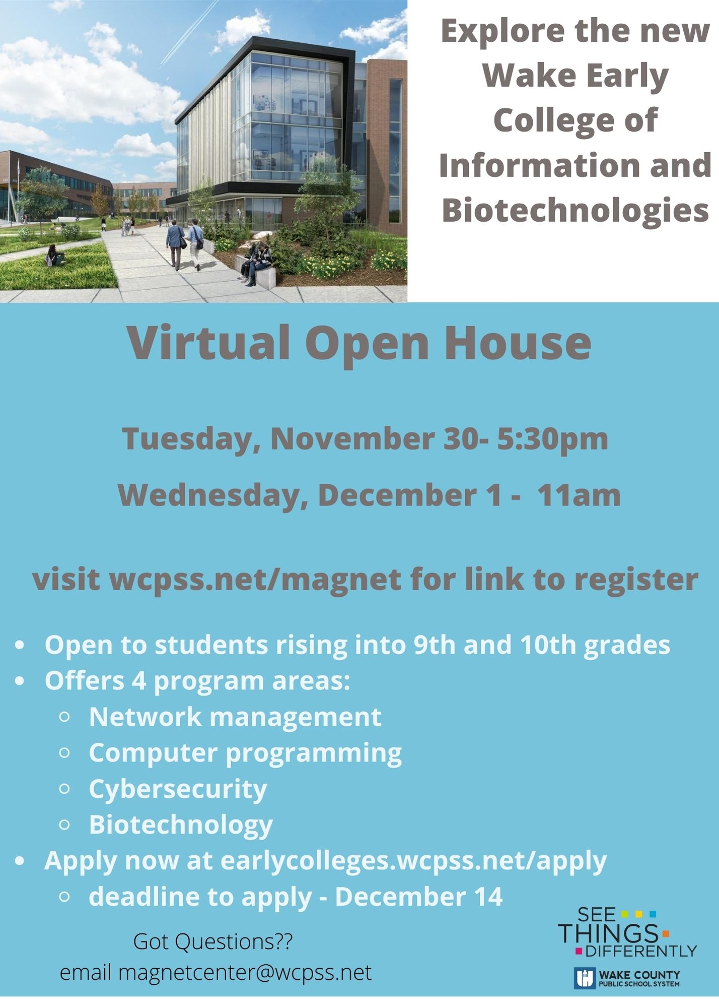 Uzivatel Wcpss Office Of Choice Magnet Schools Na Twitteru Join Us For A Virtual Open House For Wcpss Newest Early College Wake Early College Of Information And Biotechnologies Register At Https T Co Nc62pcaluv Seethingsdifferently Https T Co